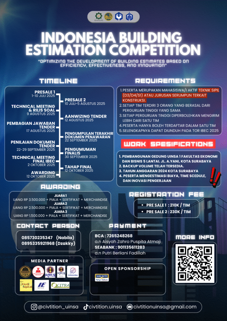 Ajang kompetisi nasional menyusun dokumen tender proyek yang mengusung tema "Optimizing the Development of Building Estimates Based on Efficiency Effectiveness, and Innovation"